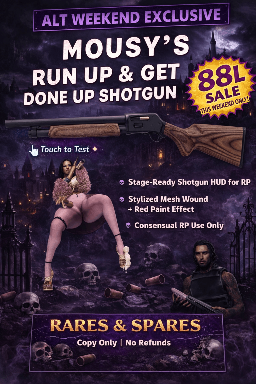Welcome to our 25th Alt Weekend Sale! 🎉 The premier weekly event for all things goth, emo, punk, grunge, and dark aesthetic in Second Life. Every weekend, discover unique creations from top alternative designers, each priced at just L$66, L$77, or L$88 from Friday 12 PM SLT. Join our Second Life group or Discord as participating stores will do store credit giveaways! We hope you enjoy the dark vibes! Creators don’t miss your chance to apply for the next round, because we’re here to stay!
